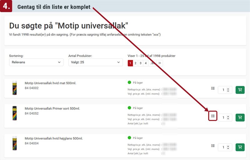 Klik 2: Læg din favoritliste i kurv: "Overfør til kurv"
