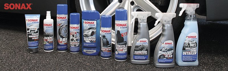Med SONAX i vores produkt line-up har vi sikret et bredt sortiment. Vi har alt, hvad du kan tænkes at få brug for til rengøring og vedligehold af bilen; hvad enten det er inde i kabinen hvor sæder, tæpper og instrumentbræt kan trænge til en tur, eller det er udvendigt, hvor lakken måske er blevet lidt mat, eller fælgene er beskidte af bremsestøv, så har SONAX et produkt der løser opgaven.