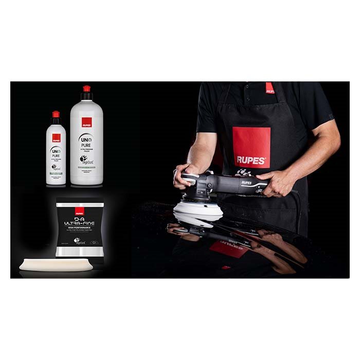 Uno Pure er et universelt kompatibelt, ultra-fint slibepoleringsmiddel, designet til brug på alle værktøjstyper, inklusive Rotary, Random Orbital eller Gear-Driven Orbital. Den egenudviklede formel, der er udviklet og blandet internt af Rupes, bruger det nyeste inden for slibende teknologi til at producere den højest mulige optiske klarhed og refleksionsevne, når den bruges sammen med Rupes BigFoot poleringssystemværktøjer og -puder. Uno Pure er ideel til meget blød eller sløret maling, og kan bruges til at skabe et ”showbil-finish”, selv på mørke farver. Fraværet af fyldstoffer, brugervenligheden og let aftørring, sikrer den bedste brugeroplevelse, samt formularen gør det til den ideelle løsning til en række applikationer.