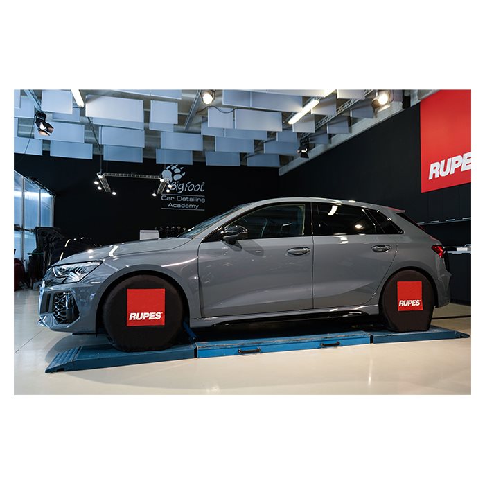 RUPES hjulovertræk er en pakke med 4 højkvalitets overtræk til dine bilhjul. Dette sæt beskytter fælgene mod vand, snavs, poleringsrester, slibestøv og andre kemikalier, væsker og forurenende stoffer. RUPES hjulovertræk er sorte, fremstillet i høj kvalitet og prydet med det røde RUPES-logo, hvilket giver et professionelt look i et detailingcenter eller værksted. Du kan nemt placere RUPES hjulovertræk rundt om fælgene, mens bilen står på jorden.