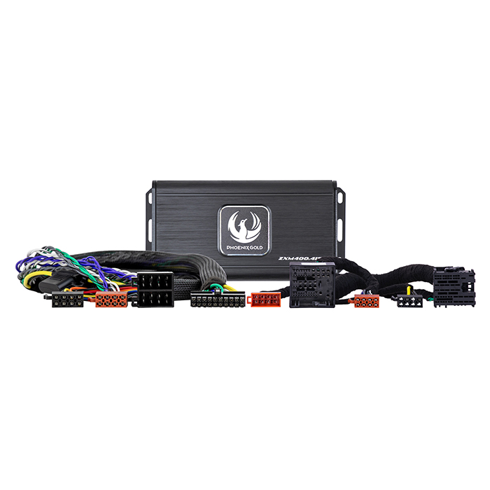 Kittet indeholder Phoenix Gold ZXM400.4ISO – en kompakt og effektiv 4-kanals Class D forstærker med 4 x 60 watt RMS.
