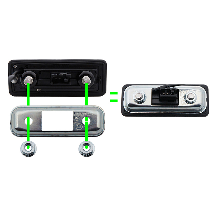 Dette bakkamera erstatter det originale bagklapshåndtag og monteres nemt uden boring eller synlige ændringer. Kameraet leverer et klart og stabilt billede og er udstyret med afstandslinjer, som kan slås til og fra efter behov. Perfekt til både originalradio og eftermonterede skærme.