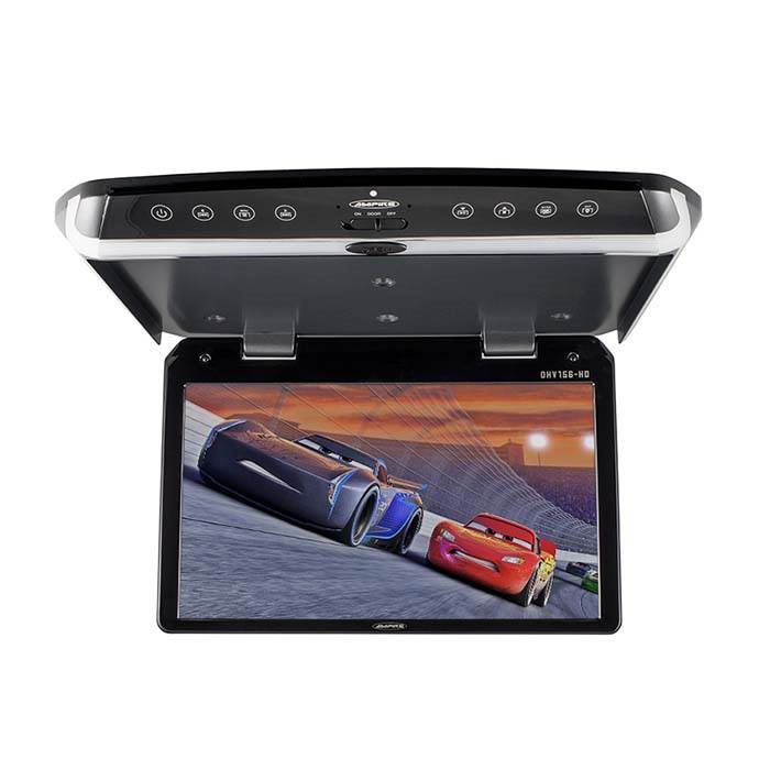 Den nye OHV156-HD-loftskærm til bilen fra AMPIRE er en ultra-flad HD-skærm med en højde på kun 30 mm. Loftskærmen har HDMI og alm. videoindgang. Derudover kan du bruge USB-indgangen til at afspille forskellige video-, lyd- og billedformater. Alle tilslutninger er ikke placeret på selve skærmen, men ledes ud som ledningsnet på undersiden af enheden. Dette giver mulighed for en professionel og holdbar installation med usynlig kabling.