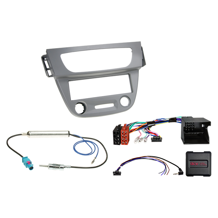 Komplet 1-DIN Kit Renault Megane III/Fluence grå – radioramme, CAN/SWC-interface og antenneadapter