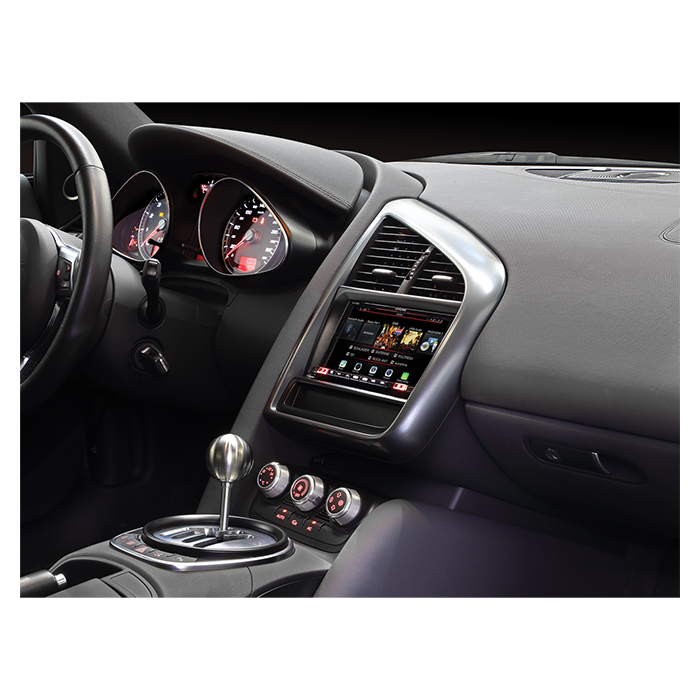 Komplet 2-DIN Kit til Audi R8 (42) 04/2007-05/2015 – facia, CAN-Bus adapter, SWC og antenneadapter (sort)