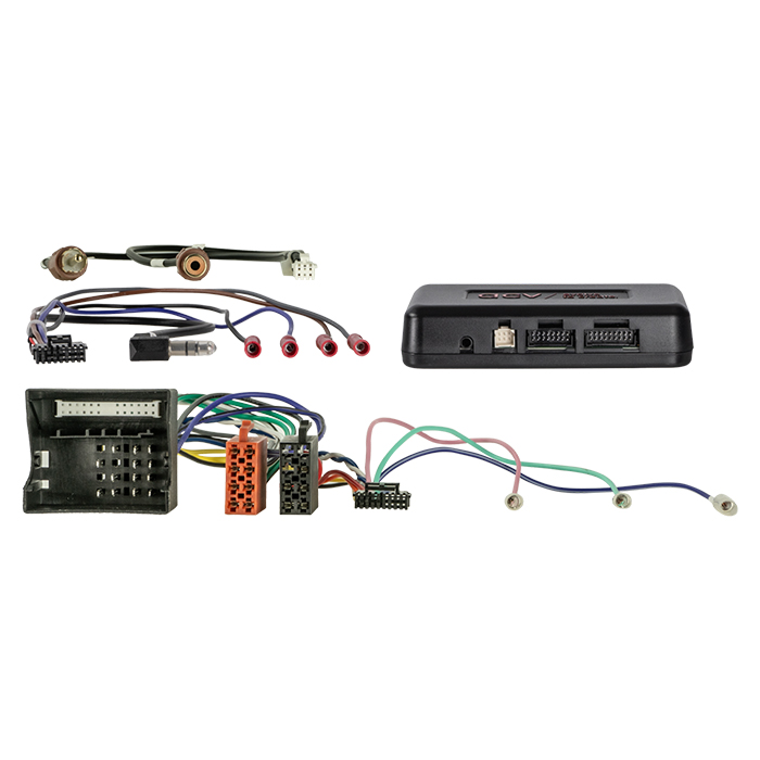 Installationskits inkluderer alle komponenter til udskiftning af en OEM HU. Afhængigt af bilens udstyr er alle nødvendige adaptere og interfaces til at drive retrofit-enheden og gendanne bilfunktioner inkluderet i leveringsomfanget.