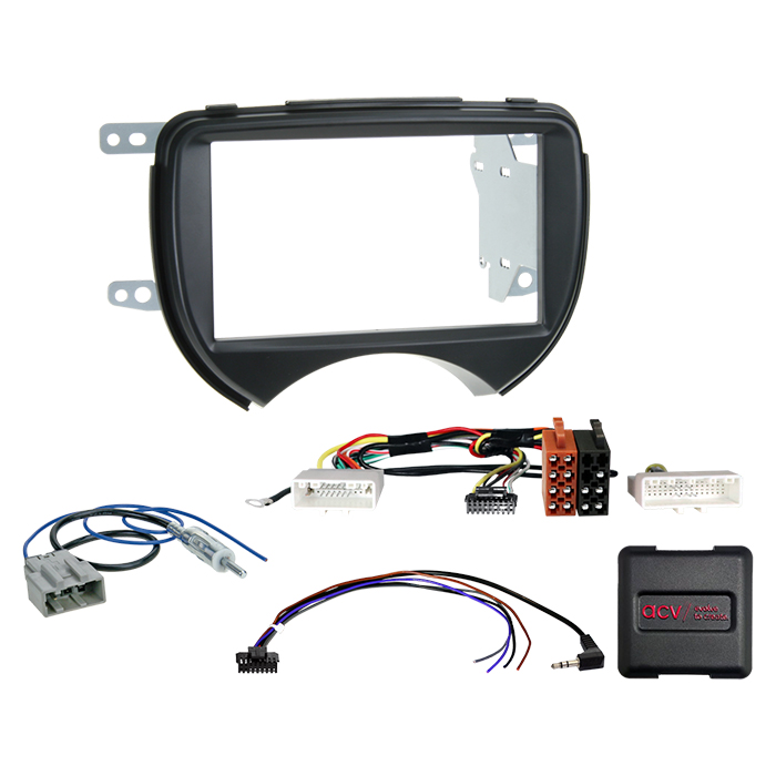 Komplet 2-DIN Kit Nissan Micra (K13) 03/2011-07/2013 – faciaplate, adaptere og ratbetjening (SWC)
