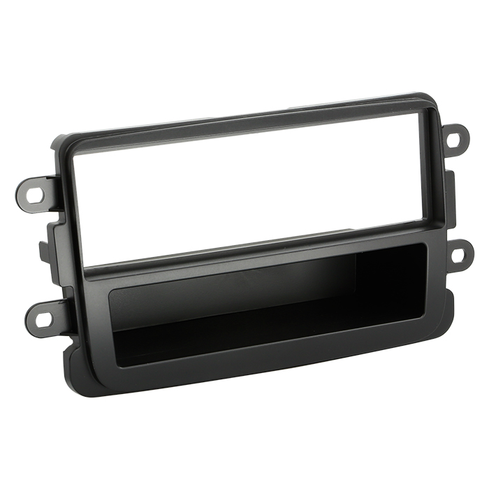 Denne 1-DIN facia-ramme med opbevaringsrum til Dacia, Fiat, Nissan, Opel og Renault i sort gør det muligt at montere en DIN eller Double DIN eftermarkedsradio professionelt. Rammen sikrer en elegant integration uden at ændre bilens originale design og kan kræve bilspecifikke kabler, antenneadaptere, ratbetjeningsinterfaces, kamerainterfaces eller aktive systemadaptere.