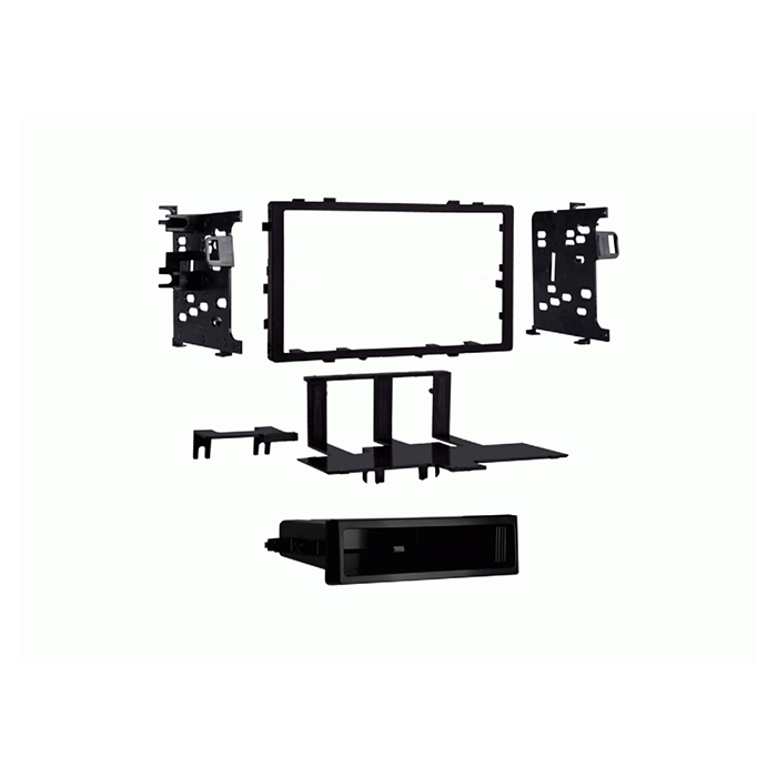 Den sorte ramme, Metra 99-7814, passer til både 1-DIN og 2-DIN enheder og sikrer en elegant integration uden at ændre bilens originale design.