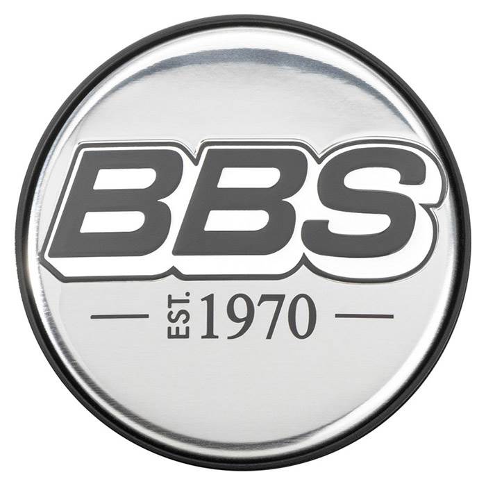 BBS 2D Centerkapsel est. 1970 præget Krom med Logo grå/hvid Ø56mm