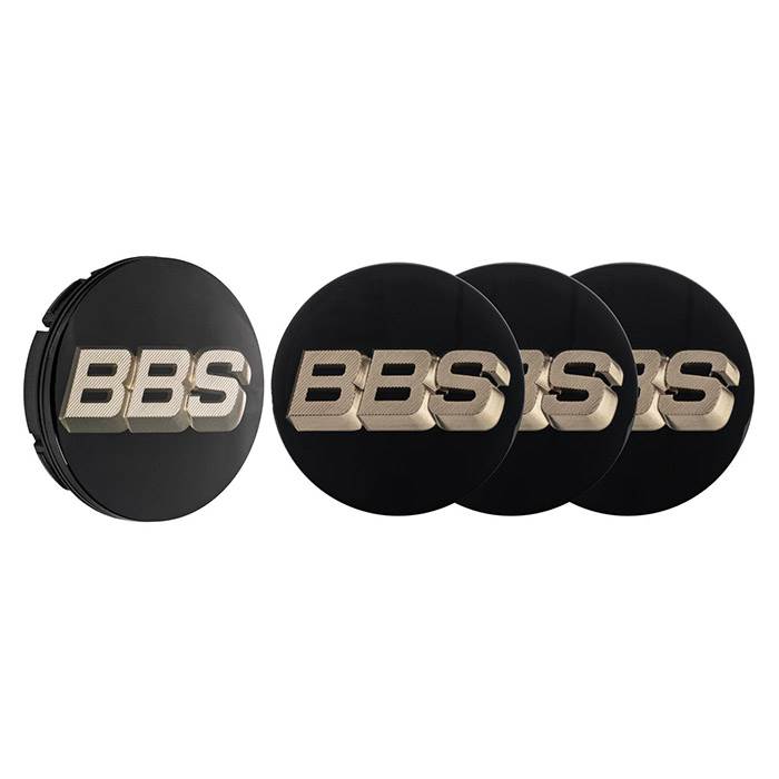 BBS Roterende 3D Centerkapsel sort med Logo hvidguld Ø70,6mm - sæt med 4 stk