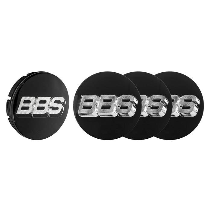 BBS Roterende 3D Centerkapsel sort med Logo sølv/krom Ø56mm - sæt med 4 stk