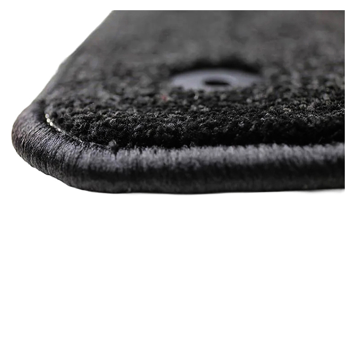 Måtterne leveres uden hælforstærkning for at bevare det rene og eksklusive design. Bagsiden er skridsikker, så måtterne ligger stabilt. Har bilen originale måttelåse, er måtterne produceret med huller, der passer præcist til sikker fastgørelse.