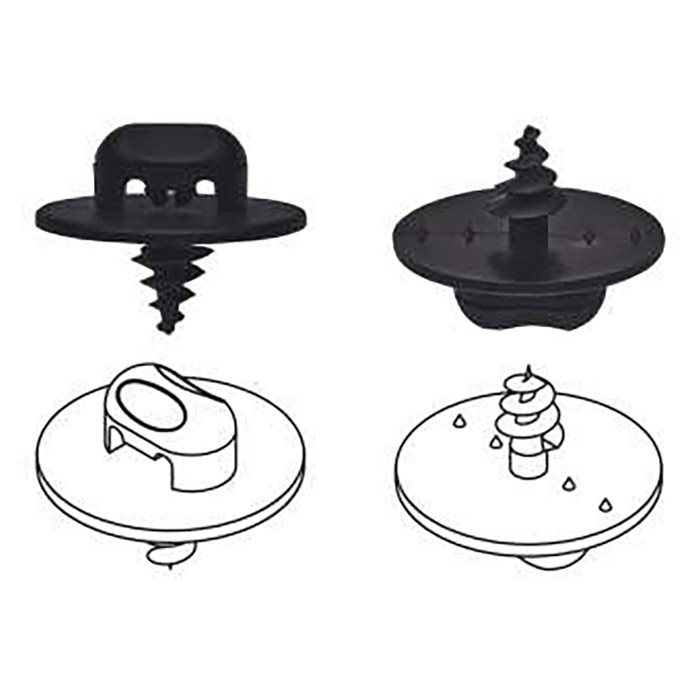 1 stk. universal brundskrue, til fastgørelse i bilens originale gulvtæppe. Herefter kan bundmåttens lås monteres på skruen.
