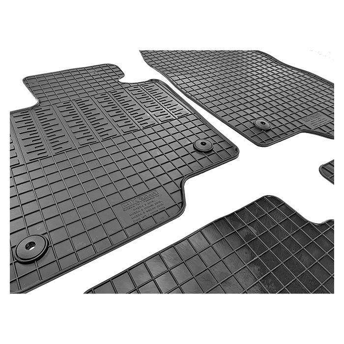 Hvert sæt består normalt af 4 måtter, samt 2 måtter til varebiler. Visse modeller kan også komme i en tredelt model.