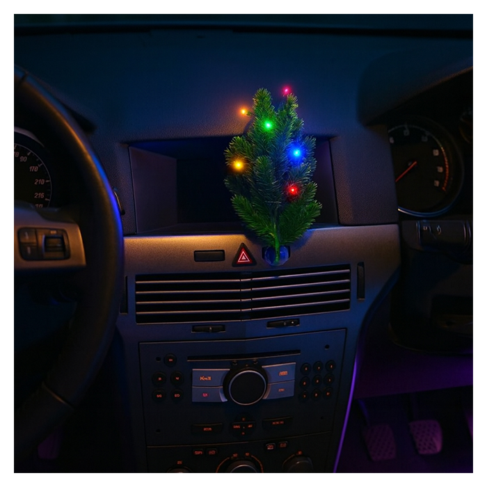 Dekorativ mini juletræmed med LED-pærer i forskellige farver.