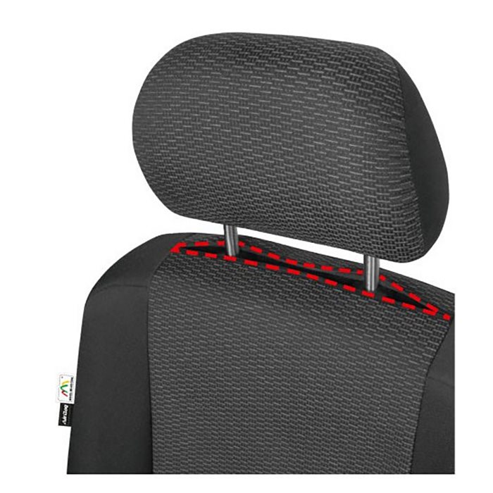 Universalt sædeovertræk i størrelse extra large til forsæderne fremstillet i kraftigt og neutralt koksgråt stof.