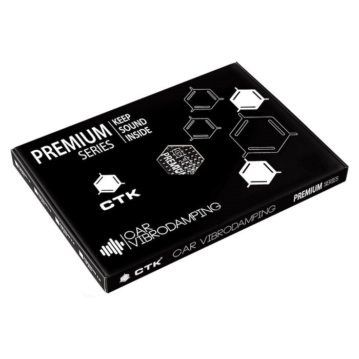 CTK Premium er et af de mest avancerede selvklæbende støjdæmpningsmaterialer på markedet, baseret på den mest moderne højkvalitets butylgummikomposit, specielle polymerer og forstærket med 100 mikron tyk præget aluminiumsfolie, som yderligere forbedrer akustikken.