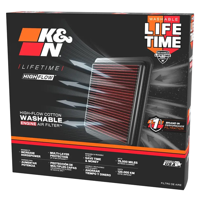 K&N luftfilter er udviklet til at øge hestekræfter, acceleration og den samlede motorydelse. Det avancerede filtermedie med flere lag bomuldsgaze sikrer optimal luftgennemstrømning og effektiv filtrering af skadelige partikler.