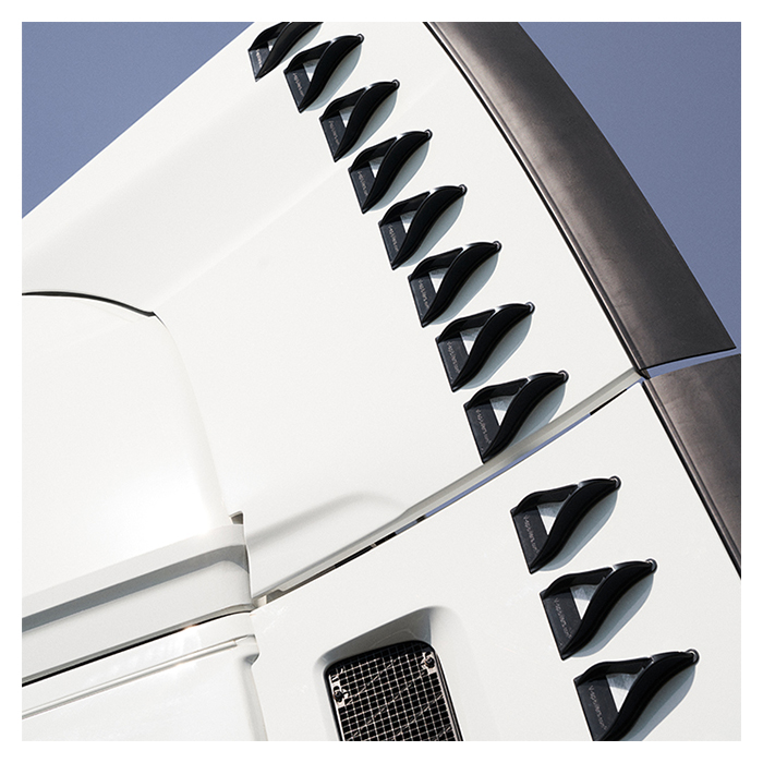 V Spoilers er en danskudviklet aerodynamisk løsning, der effektivt reducerer luftmodstand og brændstofforbrug. Hver spoiler fungerer som en vortex-generator, der forbedrer luftstrømmen omkring køretøjet og mindsker det vakuum (drag), som opstår bag bilen under kørsel.