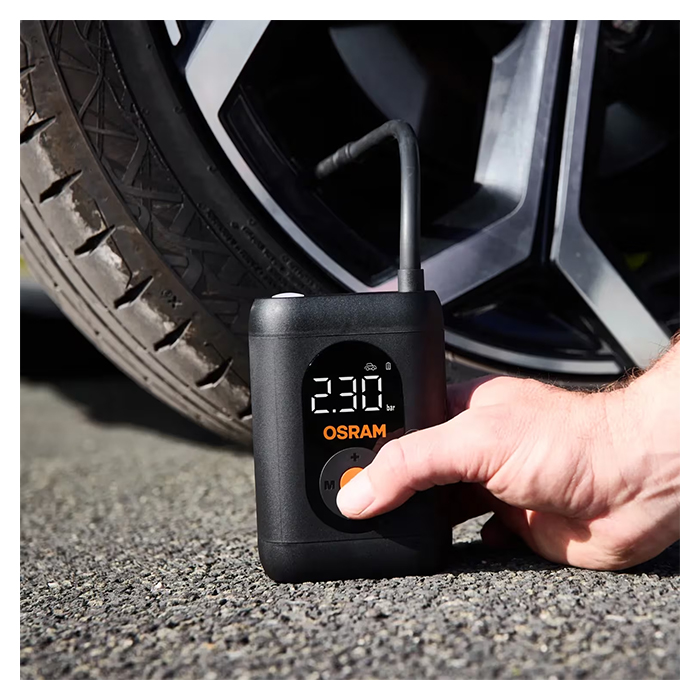 OSRAM Mini-kompressor TYREinflate 1600 ESSENTIAL – kompakt og genopladelig digital dækpumpe