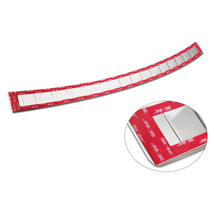 Avisa læssekantbeskytteren er den perfekte løsning til din bil, fordi den både har beskyttende funktioner og ser flot ud som et dekorativt element. Den er fastgjort ved hjælp af dobbeltklæbende tape, som er placeret på alle fire kanter af læssekantbeskytteren.