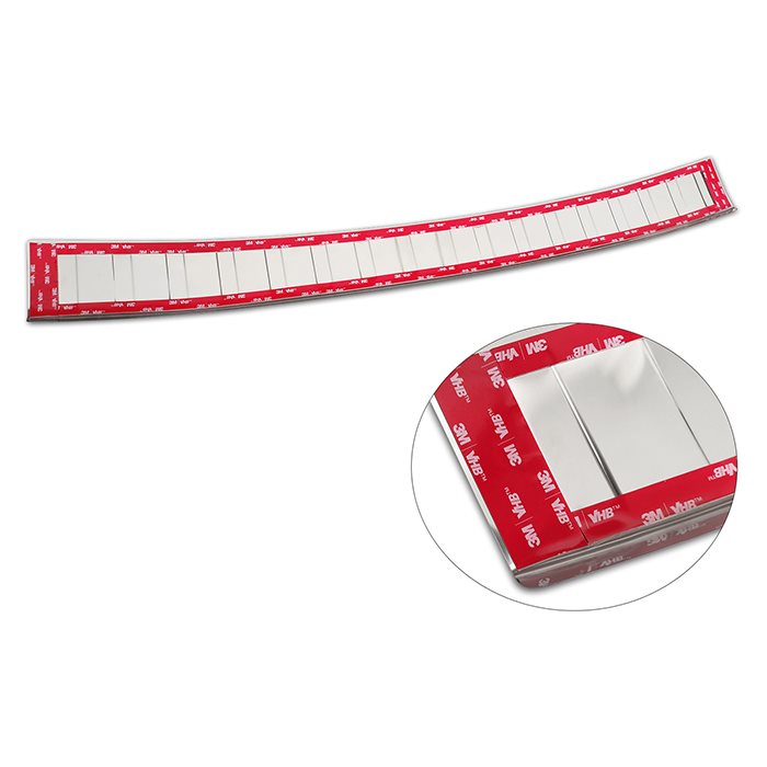Avisa læssekantbeskytteren er den perfekte løsning til din bil, fordi den både har beskyttende funktioner og ser flot ud som et dekorativt element. Den er fastgjort ved hjælp af dobbeltklæbende tape, som er placeret på alle fire kanter af læssekantbeskytteren.
