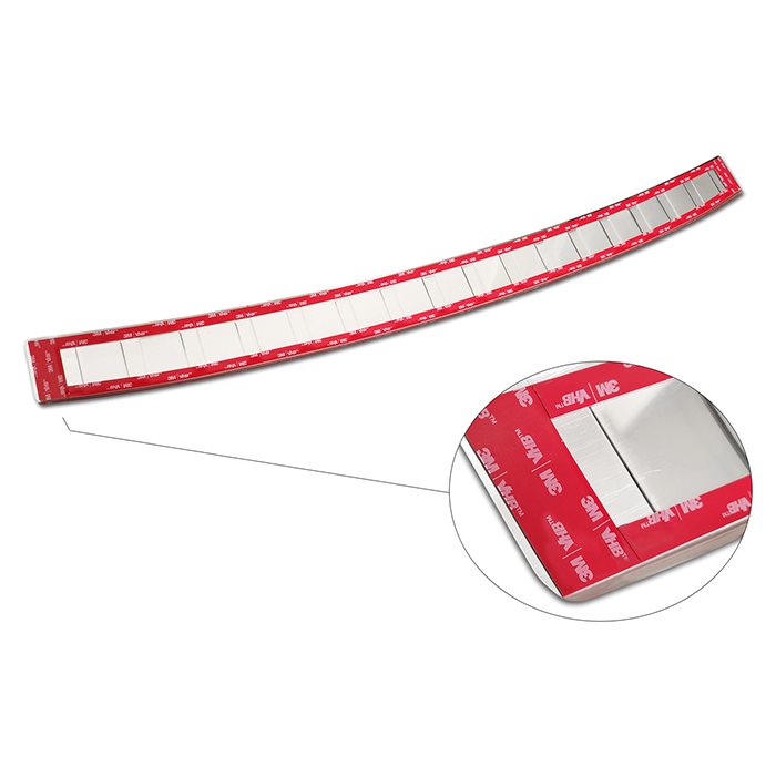 Avisa læssekantbeskytteren er den perfekte løsning til din bil, fordi den både har beskyttende funktioner og ser flot ud som et dekorativt element. Den er fastgjort ved hjælp af dobbeltklæbende tape, som er placeret på alle fire kanter af læssekantbeskytteren.