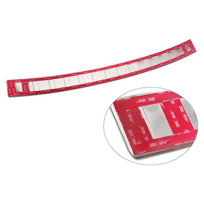 Avisa læssekantbeskytteren er den perfekte løsning til din bil, fordi den både har beskyttende funktioner og ser flot ud som et dekorativt element. Den er fastgjort ved hjælp af dobbeltklæbende tape, som er placeret på alle fire kanter af læssekantbeskytteren.