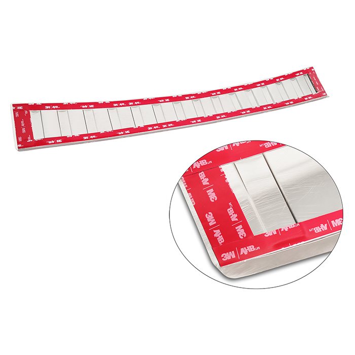 Avisa læssekantbeskytteren er den perfekte løsning til din bil, fordi den både har beskyttende funktioner og ser flot ud som et dekorativt element. Den er fastgjort ved hjælp af dobbeltklæbende tape, som er placeret på alle fire kanter af læssekantbeskytteren.