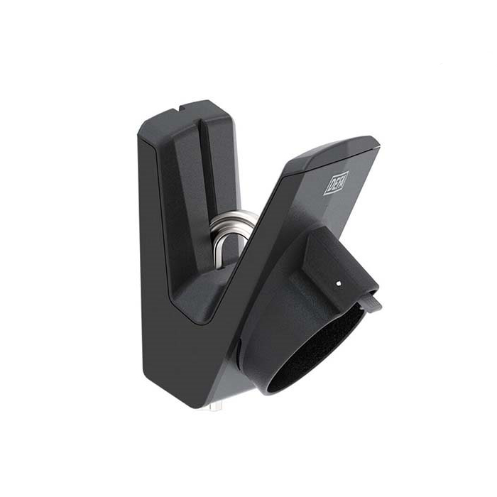 Monter dockingstationen på væggen ved siden af ladestationen eller i nærheden af bilen. Lås kablet i dockingstationen med en hængelås for at beskytte kablet, når det ikke er i brug. Frigørelseslåsen gør det let at fjerne opladningsstikket fra docken med et håndgreb. Dockingstationen kan bruges med eConnect og alle andre Type2-opladningskabler. Bemærk! Hængelås og kabel medfølger ikke.