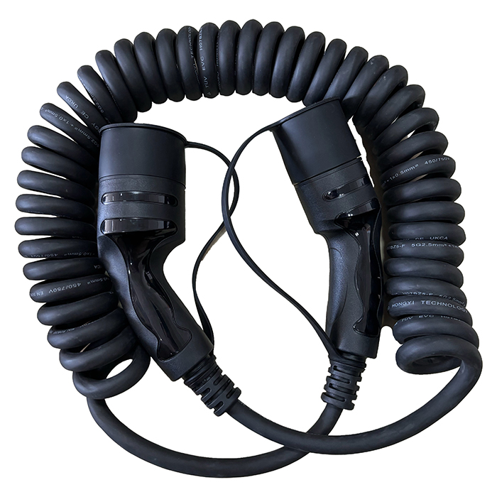 Spiral ladekabel til elbil Type-2 32A 3-faset - 5 meter