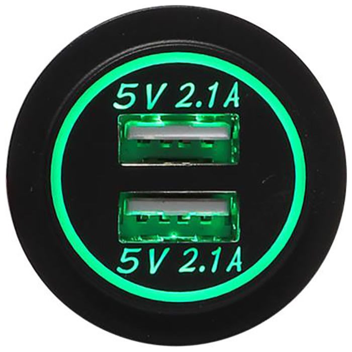 Dobbelt 12V/24V USB-lader med grøn belysning.