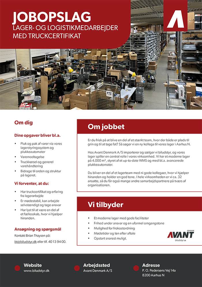 Lager- og logistikmedarbejder hos Avant Denmark A/S