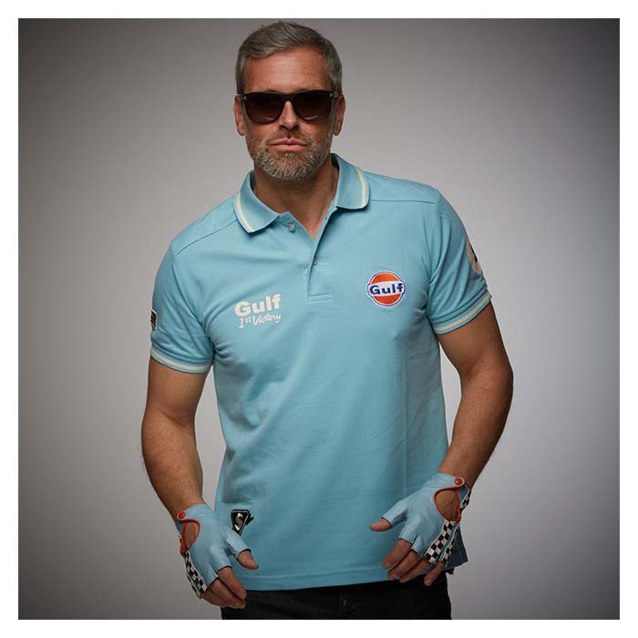 Gulf Vintage polo-shirt. Retro lysblå 3XL