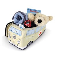 Unik universal toilettaske / kosmetiktaske lavet af blød neopren og formet som VW T1 ambulance i beige.