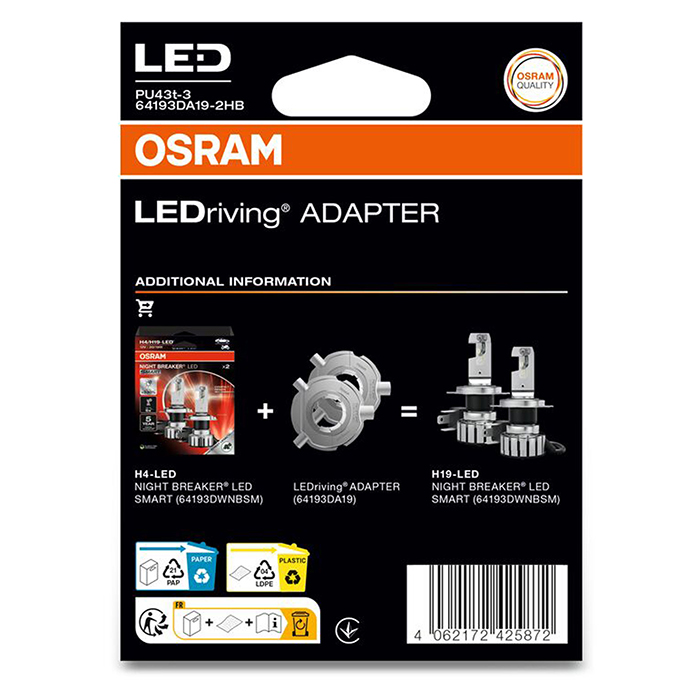 kompatible med Osram Night Breaker SMART H4 LED'er, så de er kompatible med køretøjer med H19-fatninger.