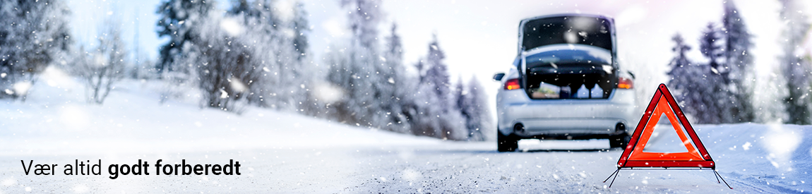 Helt basic er det vigtigt at huske en opladet telefon, telefonnr. og kundenr. til dit vejhjælpsfirma, lidt mad og drikke, tæpper, varmt tøj og vinterstøvler. Se vores øvrige anbefalinger nederst på siden.