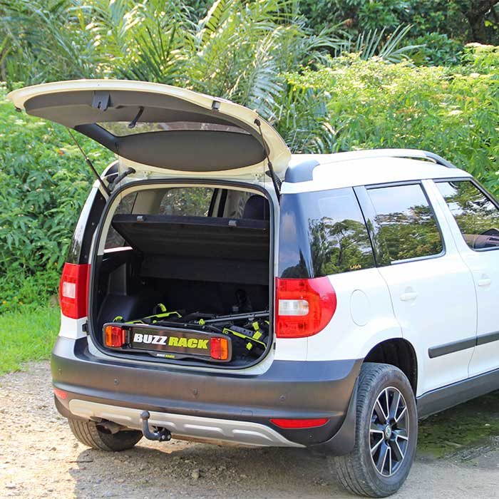 Buzzwing2 er en robust og brugervenlig cykelholder til to cykler, der monteres direkte på bilens anhængertræk med et sikkert konisk spændesystem. Den vejer kun 12,1 kg og kan foldes kompakt sammen, så den er let at opbevare, når den ikke er i brug. Den smarte drejekobling gør monteringen enkel, og vippefunktionen giver dig nem adgang til bagagerummet – selv med cykler monteret.