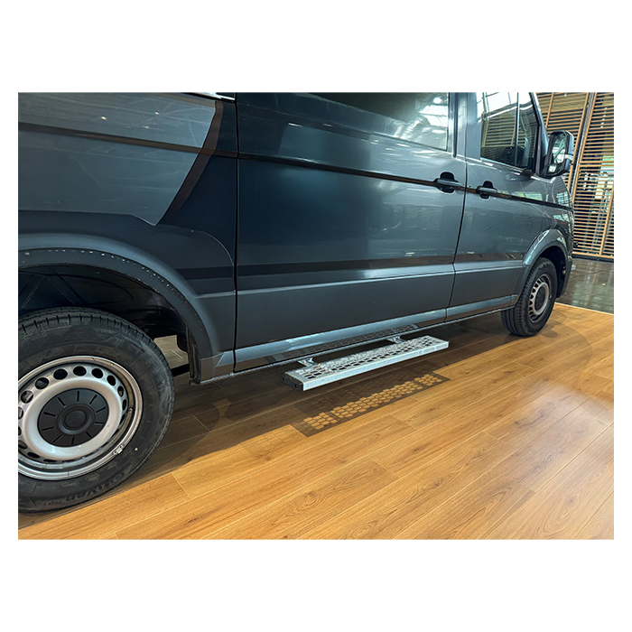 Praktisk kort sidetrin til montering under venstre sidedør på varevogne. Giver nem og sikker adgang til varerummet, reducerer belastning ved ind- og udstigning og beskytter bilen mod stød og ridser.